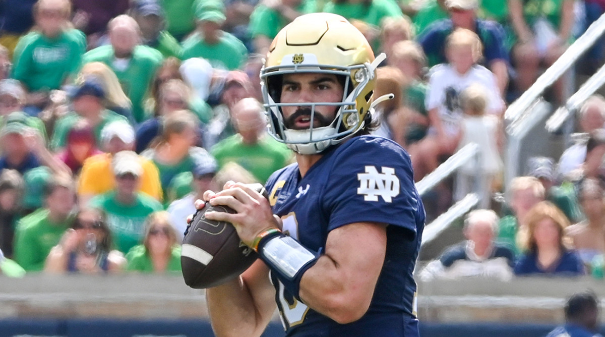 Notre Dame quarterback Sam Hartman and Fighting Irish will take on Louisville on October 7th.