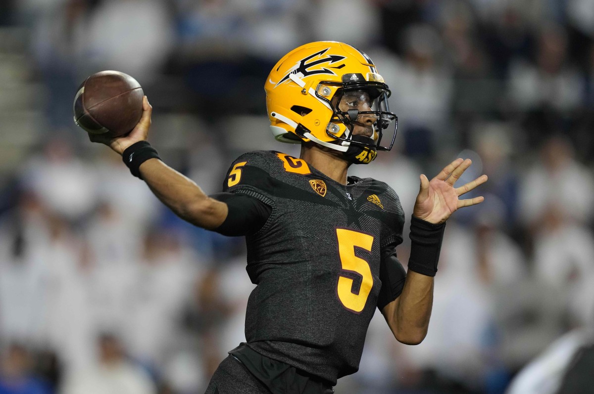After the first quarter, Sun Devils QB Jayden Daniels is 6-for-9 for 59 yards. On the ground Daniels has rushed for 18-yards and scored a touchdown.