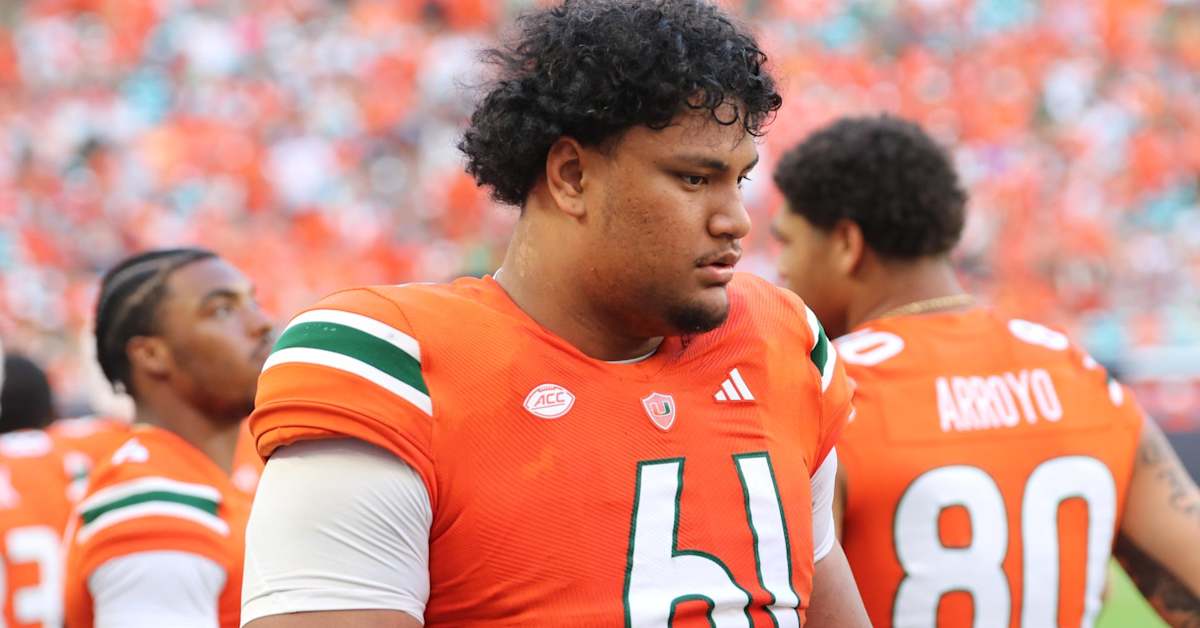 Article photo of Miami right tackle Francis Mauigoa; credit to Brian Smith