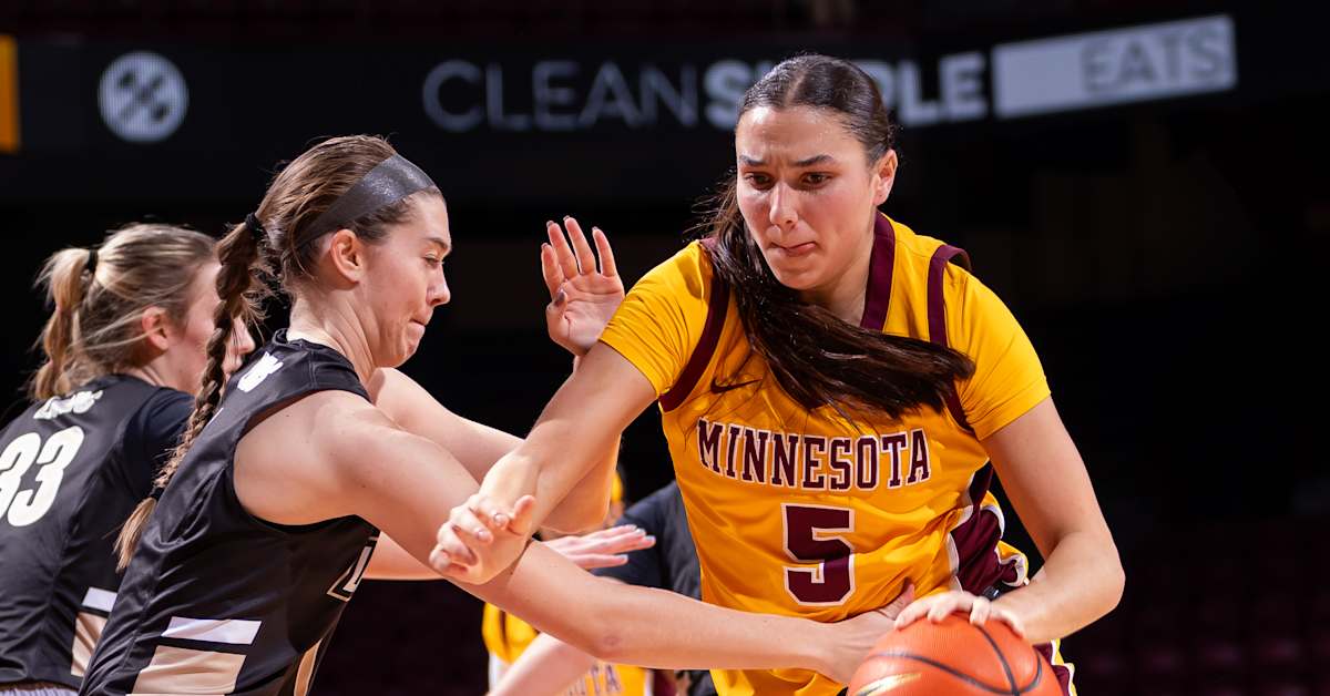 Mara Braun led the Gophers with 21 points — her fifth straight 20-point game — Maggie Cziano had 12 points and 10 rebounds off the bench, Grace Grocholski added 11 points and Sophie Hart pitched in 10.