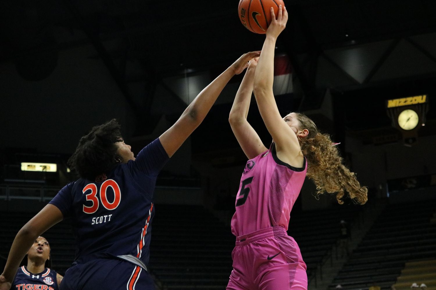 Hayley Frank hit another Missouri career milestone in the first half. With her nine points, Frank became the fourth Tiger in program history to eclipse 2,000 career points. As she has all season, Frank played physical basketball all over the court. Frank had a knock down three that literally brought her down.
