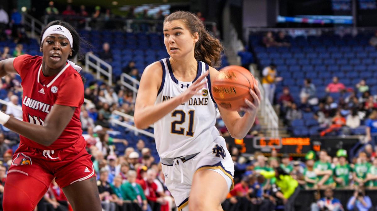 Sonia Citron and Hannah Hidalgo drove the Fighting Irish offense most of the day. The duo combined for 47 points to help Notre Dame beat Louisville for the second time in five days. Citron finished with 26 points while Hidalgo scored 21 to top the 20-point mark for the 25th time this season.