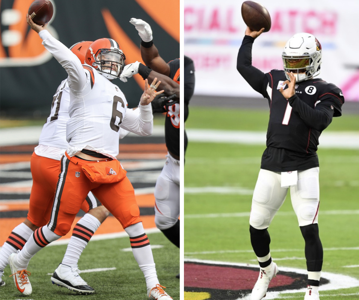 In a high-octane shootout with LSU Heisman winner and No. 1 pick Joe Burrow, Mayfield broke the franchise record by completing 21 consecutive passes, finished the day with 297 yards on 22-of-28 passing (his only incompletion down the stretch was a spike to stop the clock) and threw five touchdowns. He wrapped up the Browns’ intrastate victory with a game-winning TD throw to Donovan Peoples-Jones with 11 seconds to play.