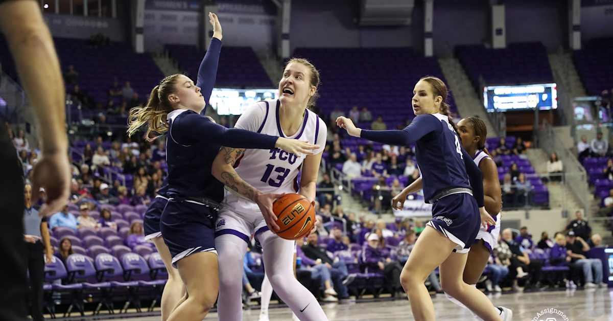 The Horned Frogs downed Omaha 96-56 two days earlier, setting a Big 12 era record for total rebounds (59) and rebounding margin (plus 32).