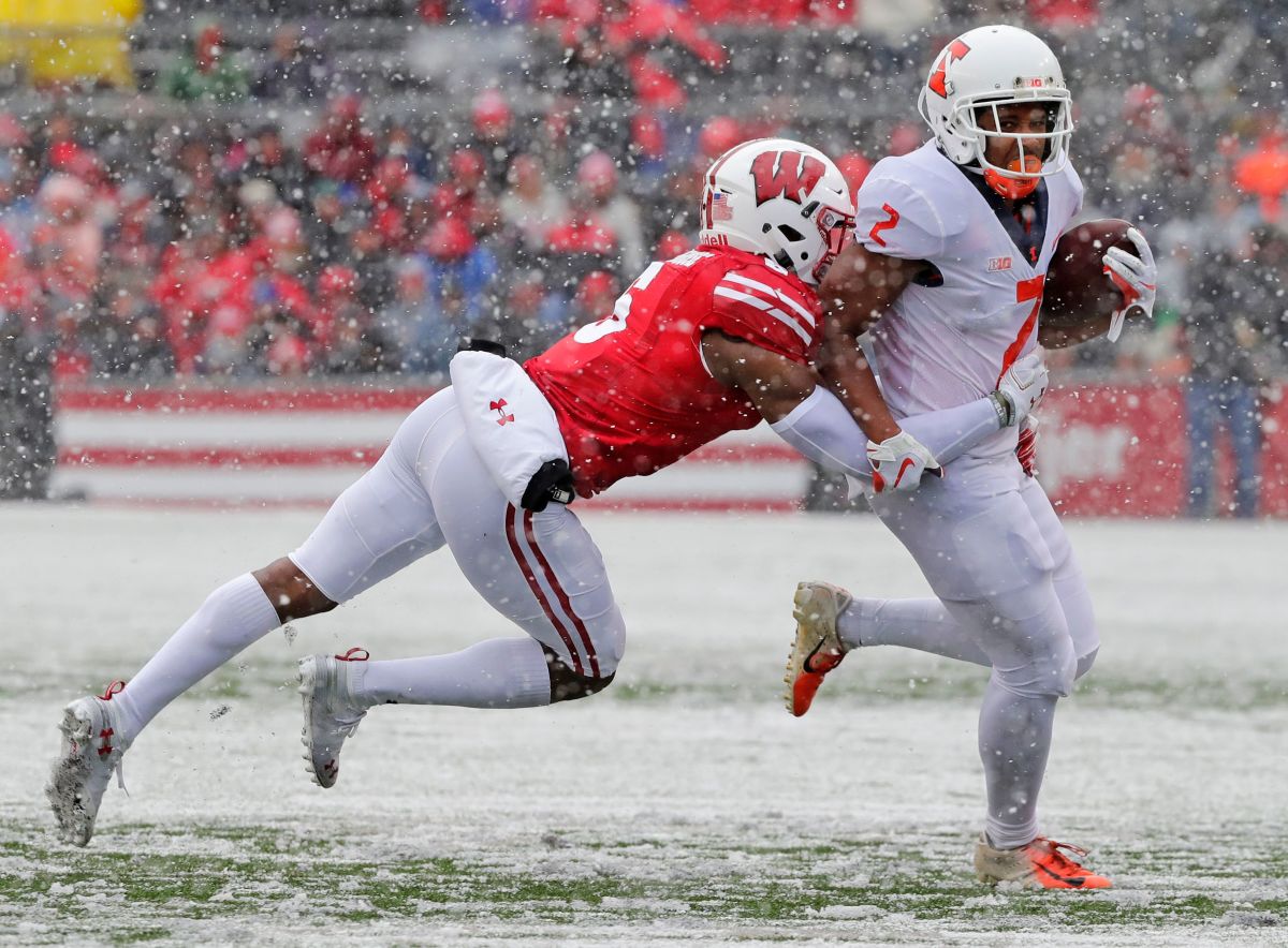 Illinois Fighting Illini running back Reggie Corbin (2) is tackled by Wisconsin Badgers cornerback Rachad Wildgoose (5) in the second quarter of a Big Ten conference football game at Camp Randall Stadium on Saturday, October 20, 2018 in Madison, Wis. Adam Wesley/USA TODAY NETWORK-Wis Gpg Badgersvsillinois 102018 Abw776