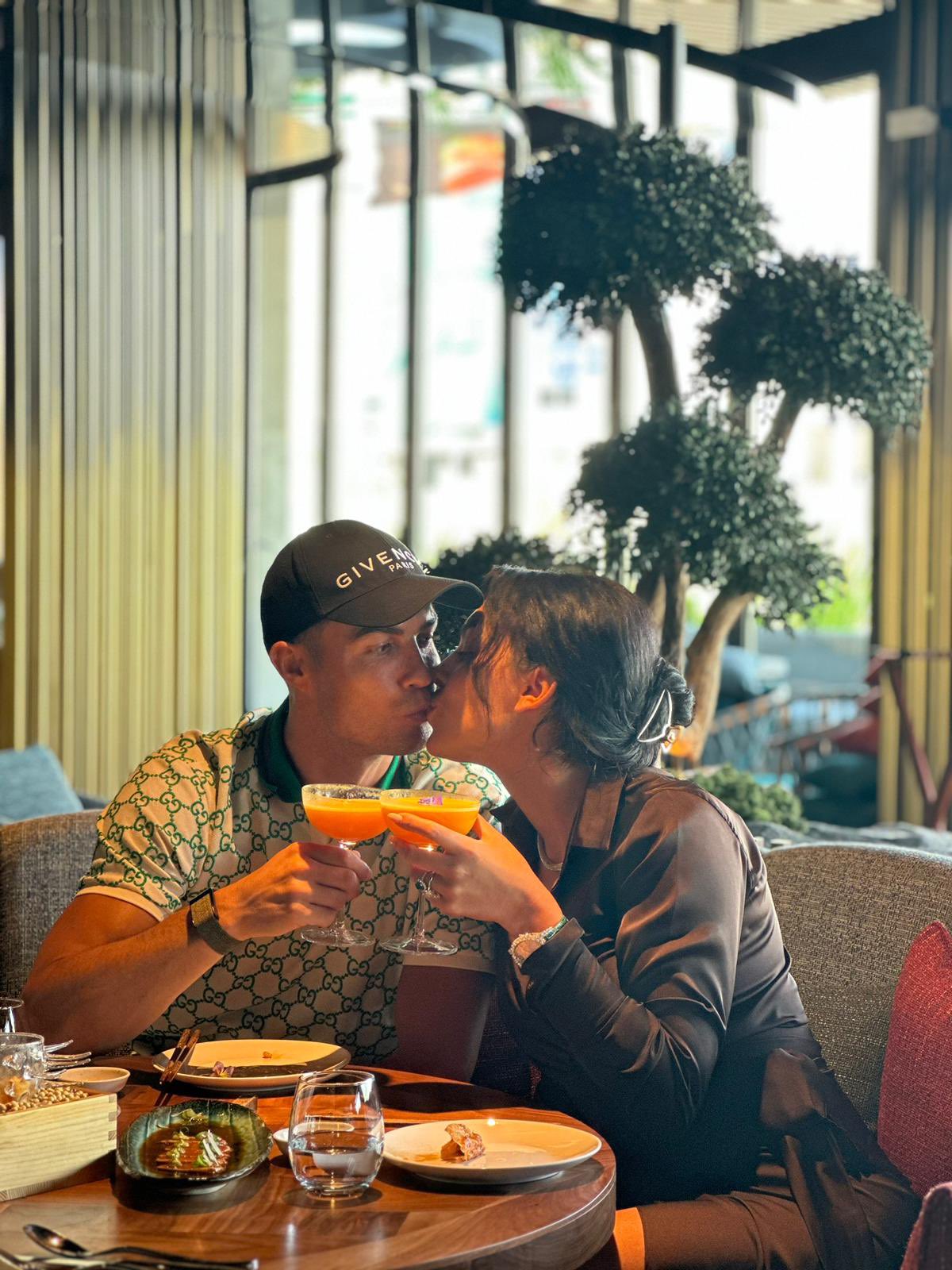 "Brindis por amor" publicó el jugador del Al-Nassr en sus redes sociales acompañado de una foto donde se le ve muy cariñoso con Georgina dándose un beso y compartiendo una bebida.