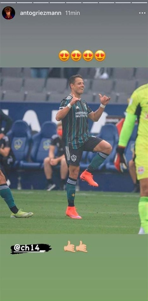 Griezmann publicó una historia en Instagram con la foto del mencionado festejo de Hernández acompañado de emojis que demostraban su ‘enamoramiento’ del gol del Chicharito.