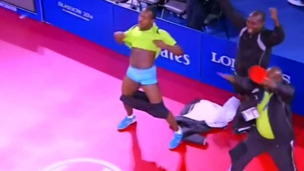 Nigerian table tennis player celebrates Commonwealth Games win by taking off his pants