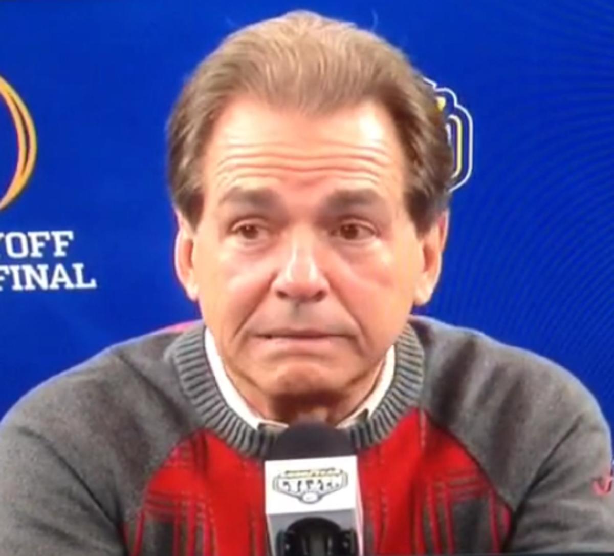 Alabama head coach Nick Saban was just answering a question when WOOOOOOOOOOOOOO!!!