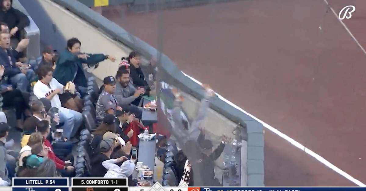 Well, he did it again on Tuesday night in San Francisco. In the fifth inning, Michael Conforto sliced a ball down the line in left. Arozarena chased it down and dove into the stands to try to catch it (he didn’t). The protective netting broke his fall but it was still a serious tumble he took.