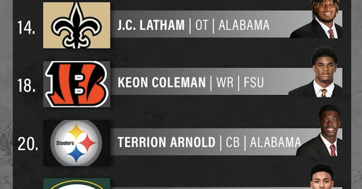 This has been a somewhat common pick for the Saints and with good reason. Trevor Penning has not developed into anything resembling the player the Saints thought he would be, and Ryan Ramczyk, who has been excellent for New Orleans for a long time, has a knee injury that could threaten his career. Enter Latham, who is an uber-athletic and imposing tackle prospect. He would reunite with Saints offensive line coach Doug Marrone, who coached him at Alabama and give New Orleans a terrific pass protector and mover in the run game.