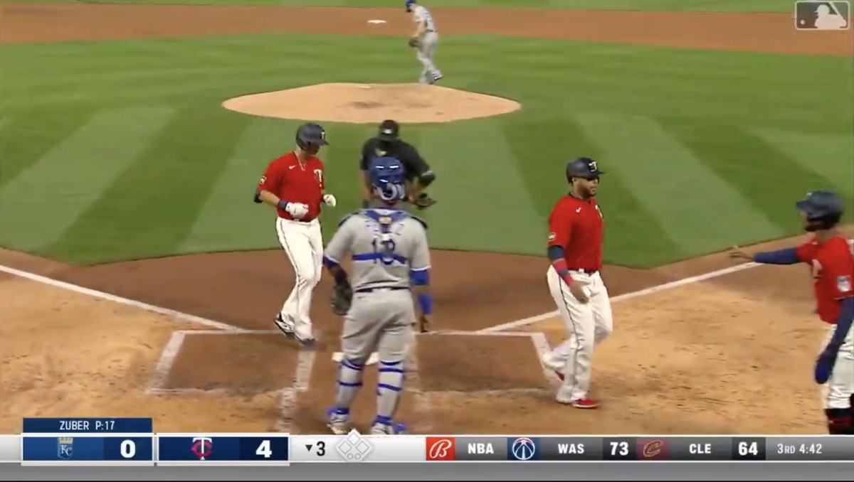 The 23-year-old hit an opposite-field bomb in the third-inning off of Tyler Zuber, scoring Byron Buxton and Nelson Cruz in the process.