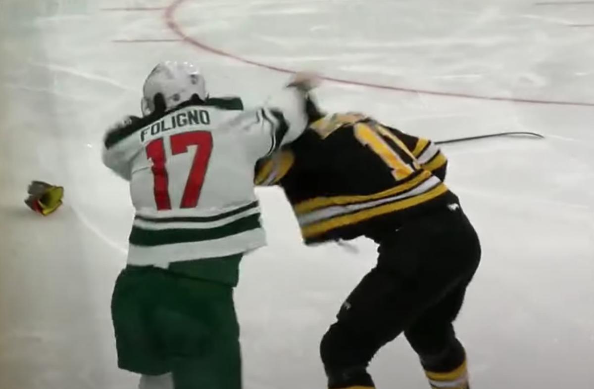 Minnesota Wild forward Marcus Foligno dropped the gloves with Boston Bruins forward Trent Frederic during Thursday night's game in Boston.