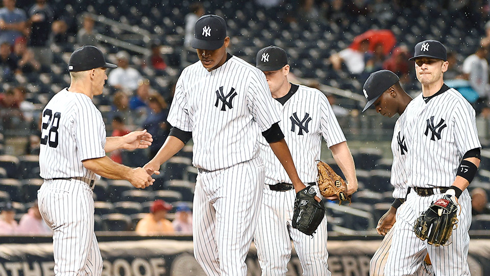 If the Blue Jays wind up winning the American League East this year, we will likely be able to point to Saturday, Sept. 12 as the day they levied the decisive blow against the Yankees. Welcoming the Blue Jays to the Bronx on Thursday while trailing by 1 1/2 games in the division, the Yankees had hopes of taking three of four to pull a half-game ahead of Toronto in the East. Instead, they lost the first three games of the series to fall 3 1/2 games back with 20 games left. New York managed to salvage the series and snap a five-game losing streak with a 5–0 win in the series finale on Sunday. Masahiro Tanaka allowed four hits over seven innings for the victory.