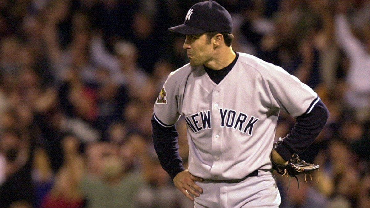 After a so-so 2002, Mussina helped the Yankees back to the World Series in '03. He ranked eighth in ERA (3.40) and fifth in WAR (6.6) for the 101-win AL East champs, though his October had its ups and downs. He worked seven innings in a losing cause against the Twins in Game 1 of the Division Series, was knocked around by the Red Sox in the ALCS opener and wound up on the short end despite a 10-strikeout performance in 6 2/3 innings in Game 4. When Clemens fell behind 4–0 and failed to retire any of the three batters he faced in the fourth inning of Game 7, manager Joe Torre summoned Mussina out of the bullpen for the first relief appearance of his professional career. He was nails: With runners on first and third, he whiffed Jason Varitek on three pitches, then got Johnny Damon to ground into a double play to escape the jam. He worked three scoreless innings, an unsung hero in a game the Yankees won in 11 on Aaron Boone's walkoff homer.