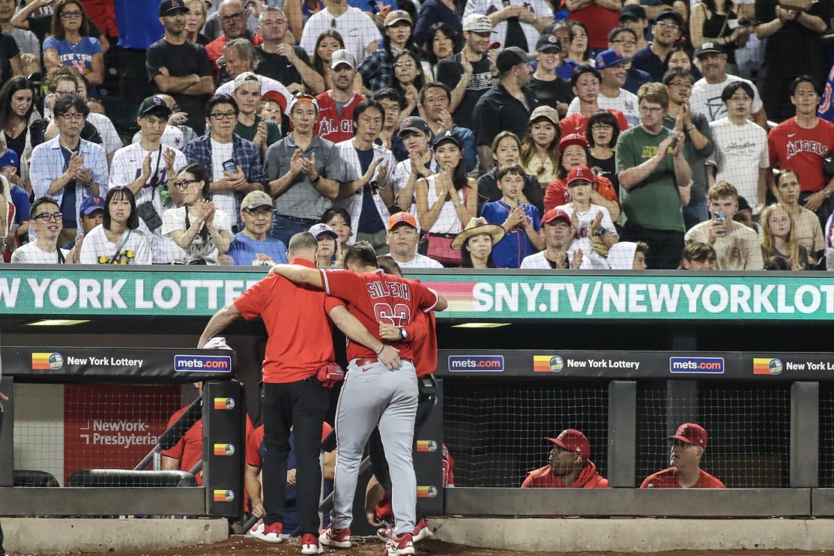 In a frightening scene out of New York, Angels rookie starting pitcher Chase Silseth was forced to exit his start against the Mets in the 4th inning after getting a hit in the back of the head with a thrown baseball.