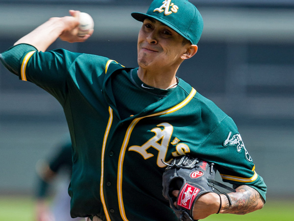 A 42nd-round draft-and-follow by the Rangers back in 2002, Chavez passed through the hands of six teams before reaching the A's in August 2012. Though possessing mid-90s velocity, his control problems led to gaudy walk and home run rates (3.6 and 1.7 per nine through the 2012 season) while yielding subpar whiff rates; team after team thought they could be the one to straighten him out, to no avail. Under pitching coach Curt Young, Chavez has backed off the use of his four-seam fastball and slider in favor of a slow curve and a cutter, enabling him to keep the ball down and find the corners of the strike zone. Thanks to that recipe, the A's turned him into a serviceable reliever last year (3.92 ERA and 8.6 strikeouts per nine in 57 1/3 innings) before moving him to the rotation this year.