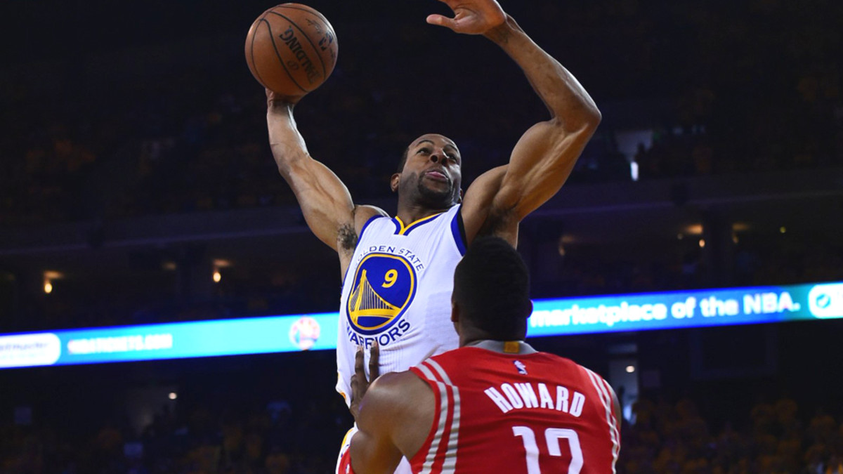 The dunk came with 10:34 remaining in the second quarter on a 3-on-1 fast break. Rockets center Dwight Howard was the lone Houston player in the paint, but declined to challenge the soaring Iguodala after Andrew Bogut dished a pass off.