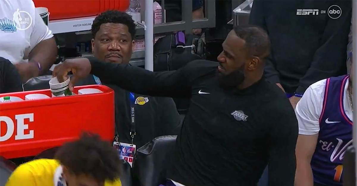 LeBron James Uses Prop on Bench to Reenact Anthony Davis’s Dunk