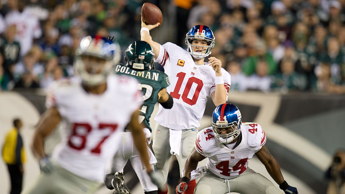 Though the Giants won the Super Bowl roughly 29 months ago, this is clearly a team in transition. But if New York can make a quick adjustment to McAdoo’s offense, with its ability to create multiple stress tests for a defense, Manning’s passing numbers could soar. Already his confidence seems to have made a strong comeback.
