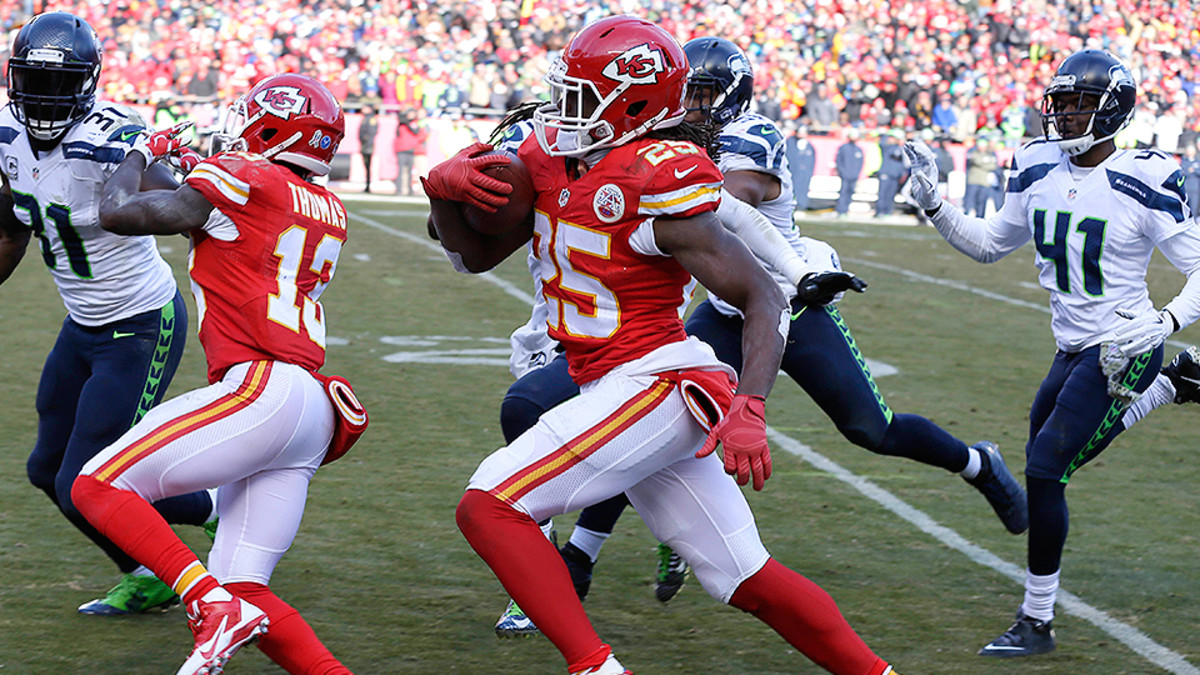 Charles scored on back-to-back possessions in the first half: a one-yarder to open the scoring, then a 16-yard scamper to hand Kansas City a 14-7 lead. Later, with the Chiefs trailing by three in the fourth quarter, Charles broke free on a 47-yard pickup deep into Seattle territory. Knile Davis scored what would be the game-winning touchdown on the next snap.