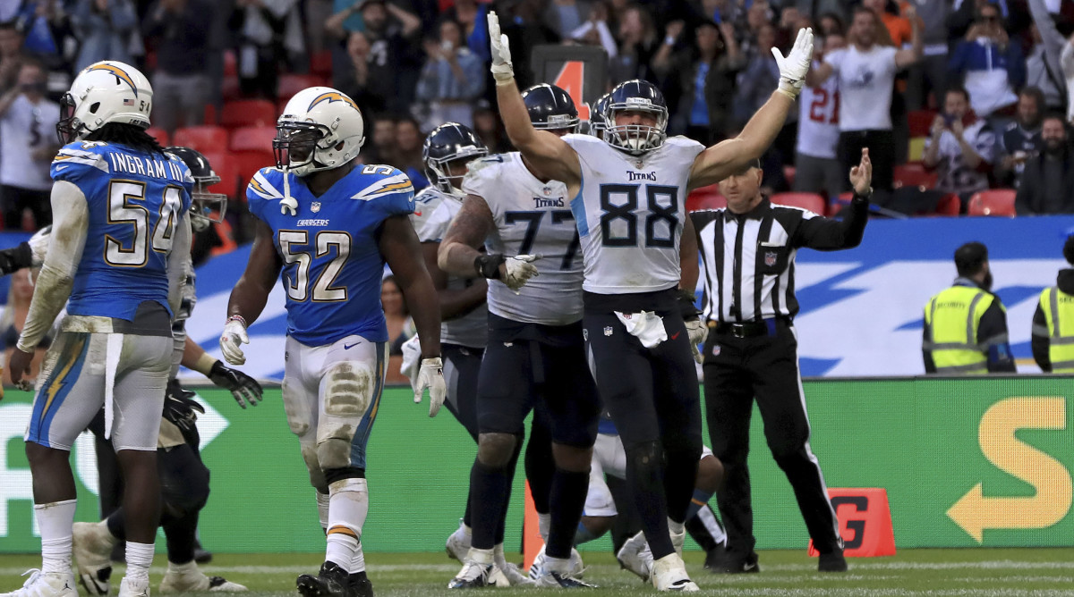 Watch: Chargers Escape London With Win Over Titans With Stop on Two-Point Conversion