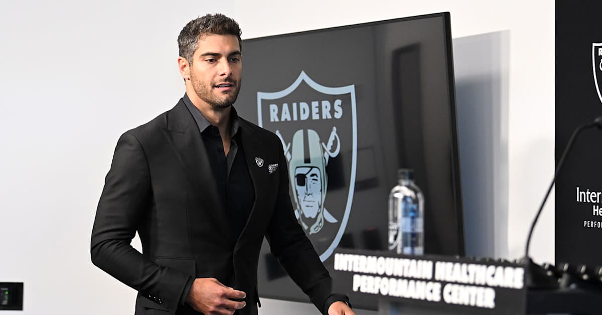 “They were one of the first groups to reach out and just talk to us in the early stages of it, and that kind of got me excited about it,” Garoppolo says. “You start talking about the pros and cons of each team, and players and coaches they got. It all makes sense here in Las Vegas, I’d say. Just the further I went into the process, the easier the decision became.”