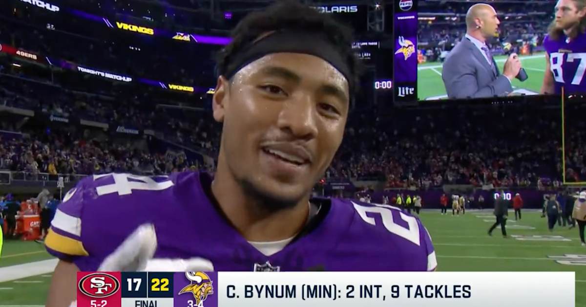 Vikings defensive back Camryn Bynum, who sealed the team’s 22–17 win over the 49ers on Monday night with an interception, took his camera time on NFL Network to speak about matters off the field that mean a lot to him.
