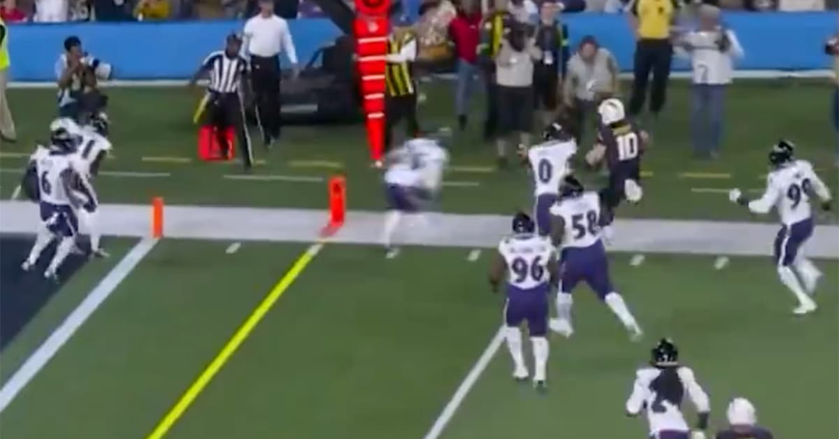 Herbert scampered toward the right sideline for a gain of five yards before trying to sneak out of bounds in order to avoid contact. Despite successfully getting his feet out of bounds, Los Angeles’ star quarterback was blown up by a late hit from Stone.