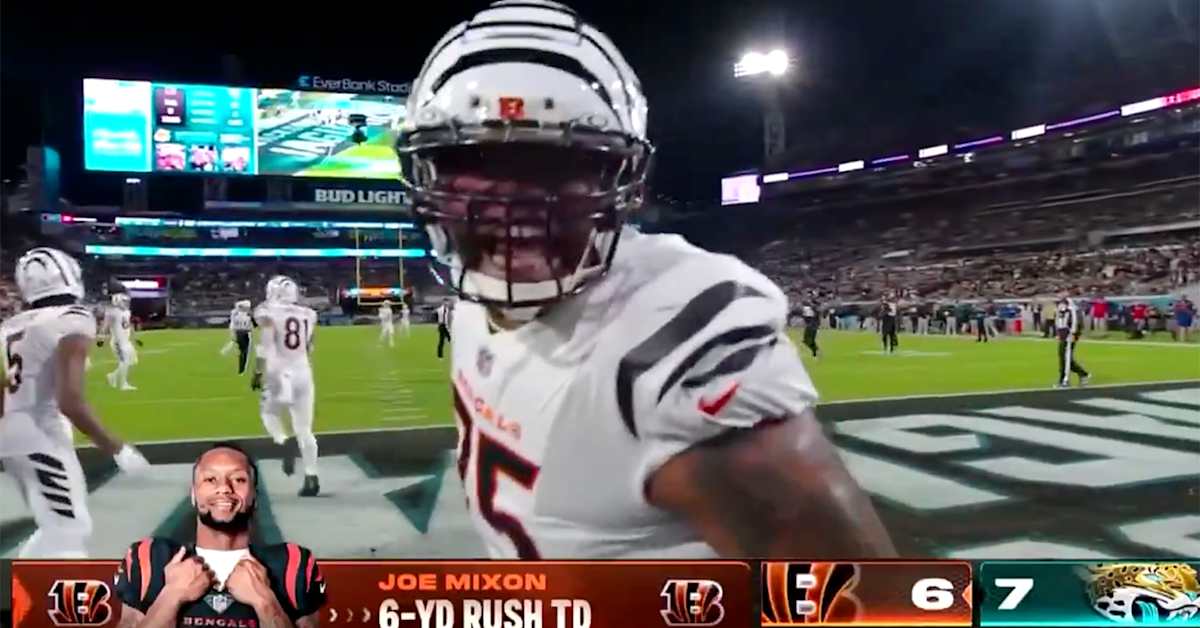 The Bengals were fired up after Joe Mixon punched the ball into the end zone for their first touchdown of the game during Week 13’s Monday night matchup against the Jaguars.