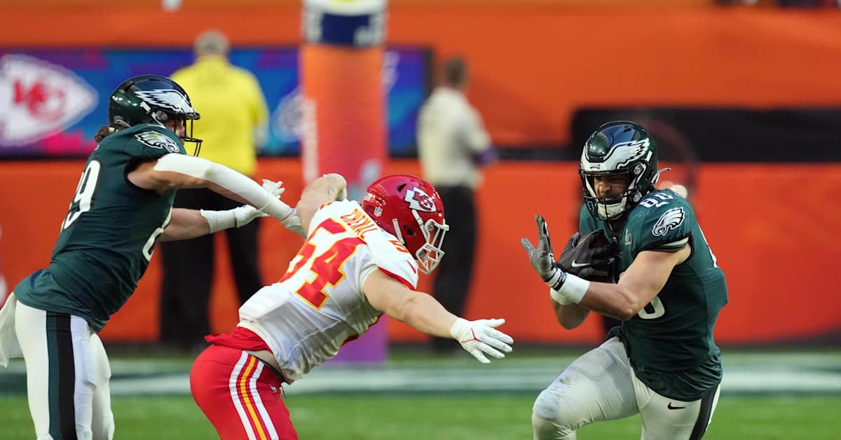It’s fascinating to consider how many strength-on-strength matchups Monday’s game offers. The Eagles claim the NFL’s best third-down offense, converting at exactly 50%; the Chiefs allow the fewest yards per play (3.0) on third downs. Kansas City’s defensive pass rush is No. 3 in sacks (30); they play a Philadelphia offense that allows just 2.4 sacks per game. Chris Jones even suggests the Chiefs have a rugby-style answer to the Eagles’ tush-push.