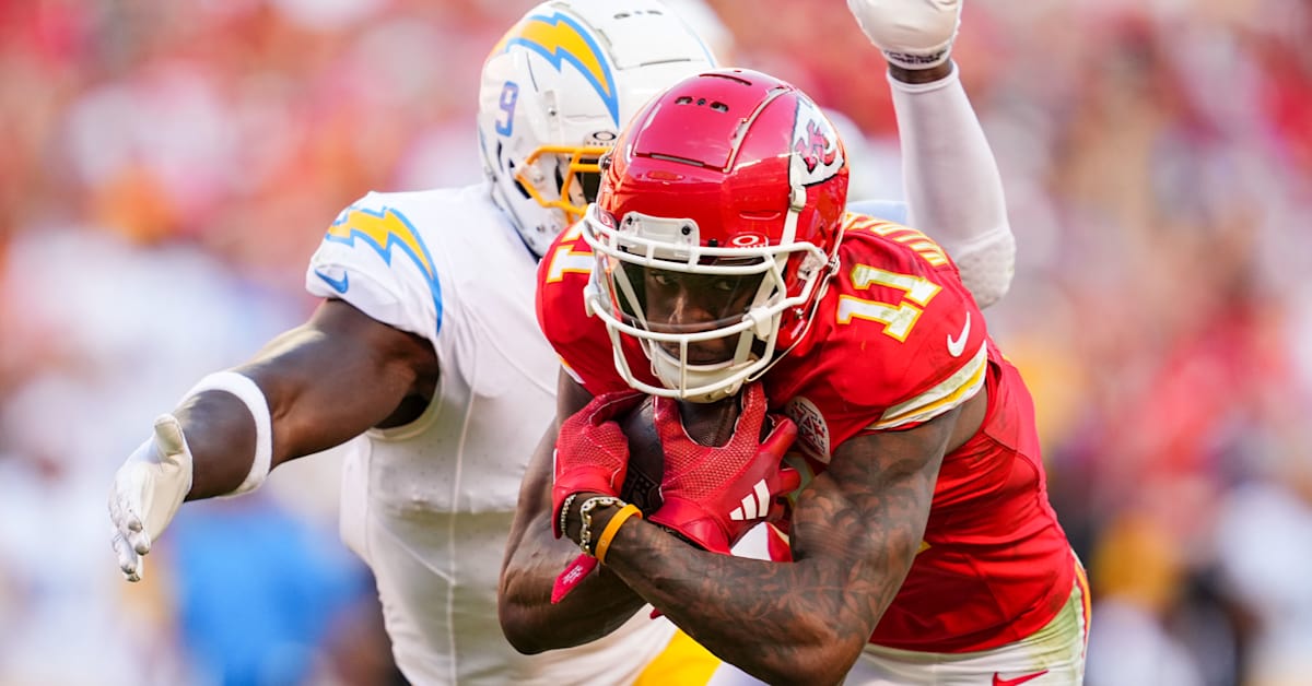 Marquez Valdes-Scantling had two catches for 48 yards in Week 1 and another two-catch outing in Week 2 but in Weeks 3-6, he had no more than one catch or 37 yards in a game. On Sunday, however, he broke out with five targets, three receptions, 84 yards and a touchdown on a classic Mahomes extended play. Valdes-Scantling did have one drop on a pass he probably should've fought backward more for but overall, the good far outweighed the bad for him against the Chargers.