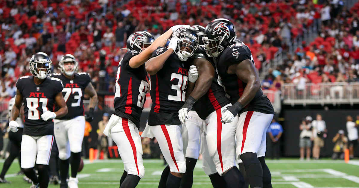 Caleb Huntley and Qadree Ollison, both of whom are competing alongside Allgeier for the primary backup running back job behind Cordarrelle Patterson, all found the end zone in today's game.