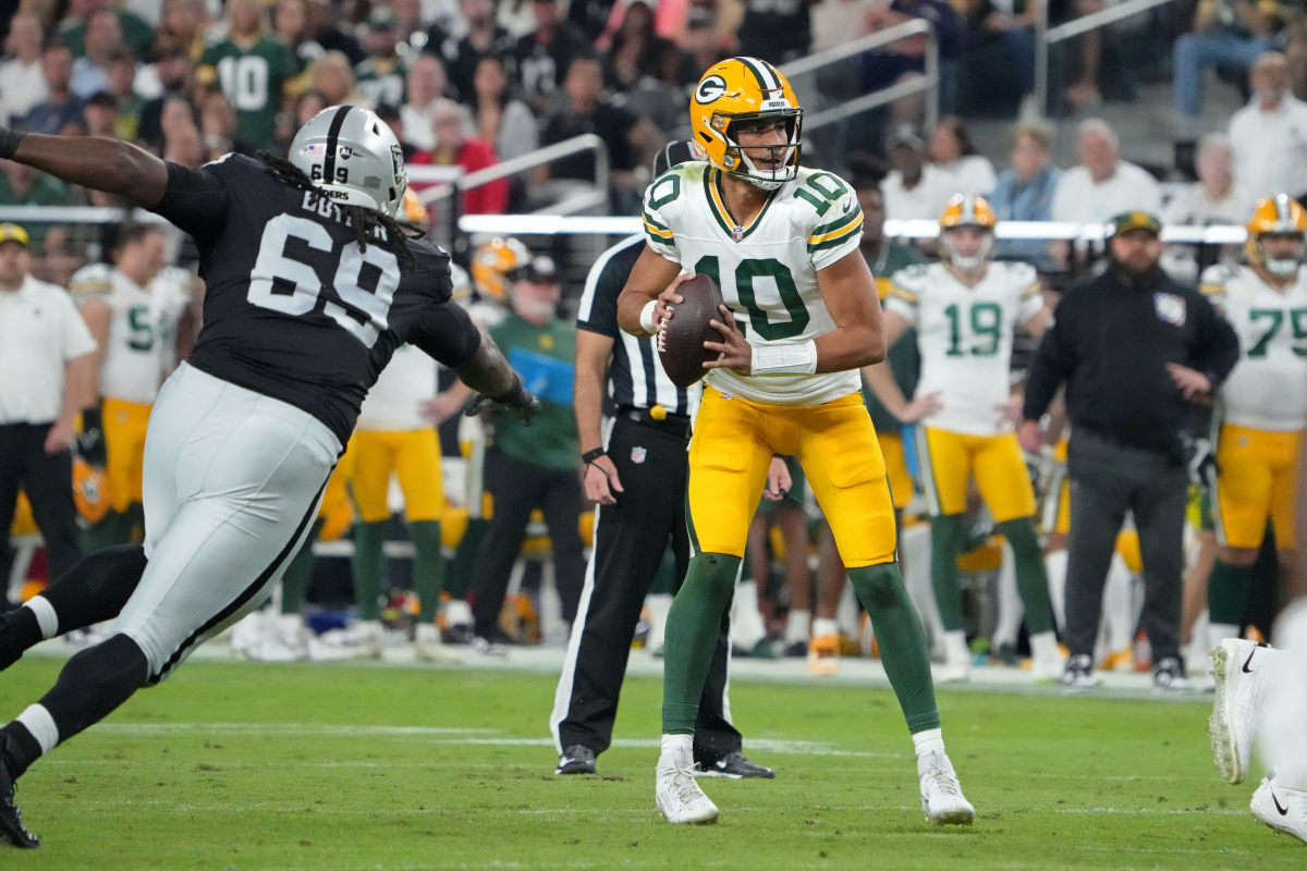 Love finished with 182 passing yards against the Raiders. Of those, 77 came on one play in which the Raiders dropped Christian Watson in coverage.