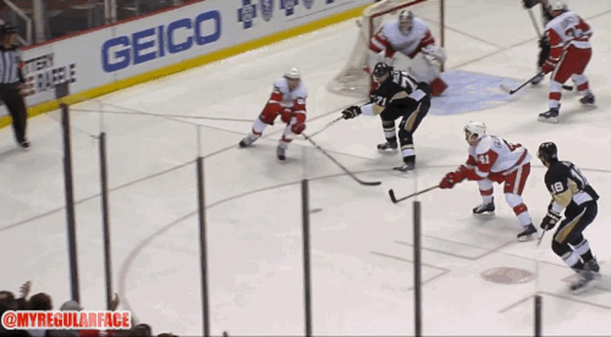 At 5:19 of the second period, James Neal threw a high cross-check on Red Wings forward Luke Glendening. Neal's stick connected with Glendening on the side of his helmet and the Pens forward was assessed a minor penalty for cross-checking.