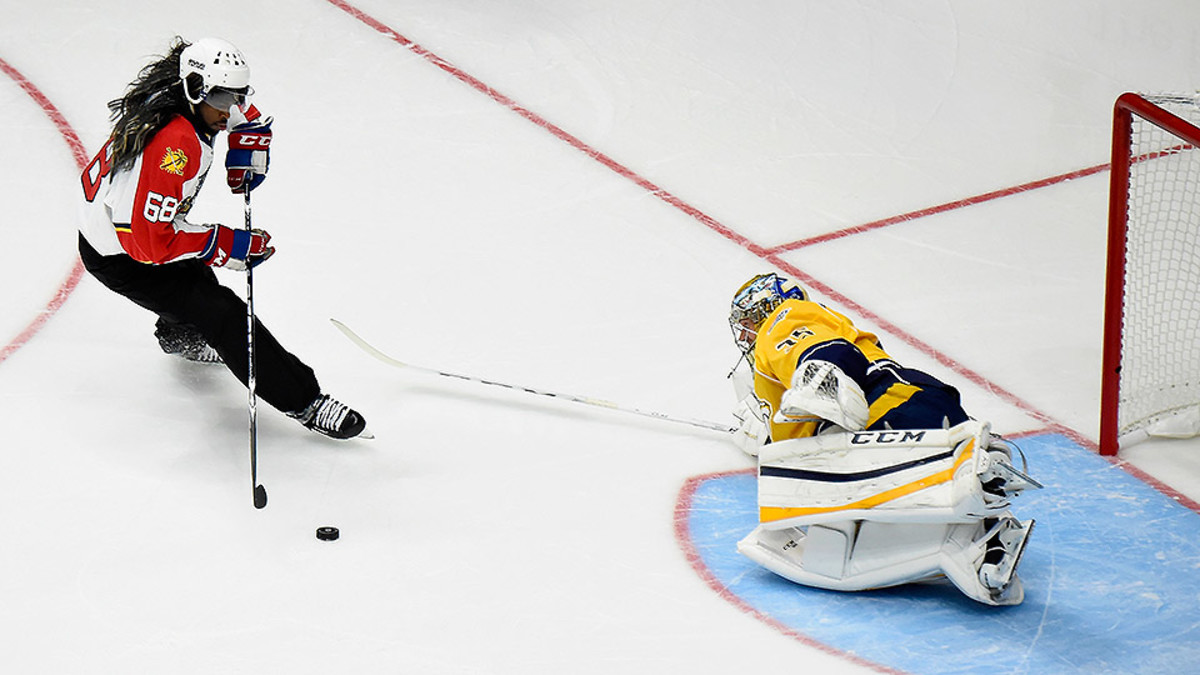 And a pretty good moment, though not even the best hair-related event Bridgestone Arena witnessed. That belonged to Subban, who somehow found a white Jofa helmet, black official’s pants and a fake mullet that needed some spray-painting. Pair those with a No. 68 Florida Panthers jersey and a salute after scoring, and Subban’s homage to Jaromir Jagr was damn near perfect. “It's a tribute to Jags and the great career he’s had so far,” Subban said during an on-ice interview. “I guess I can be him for one shootout.”
