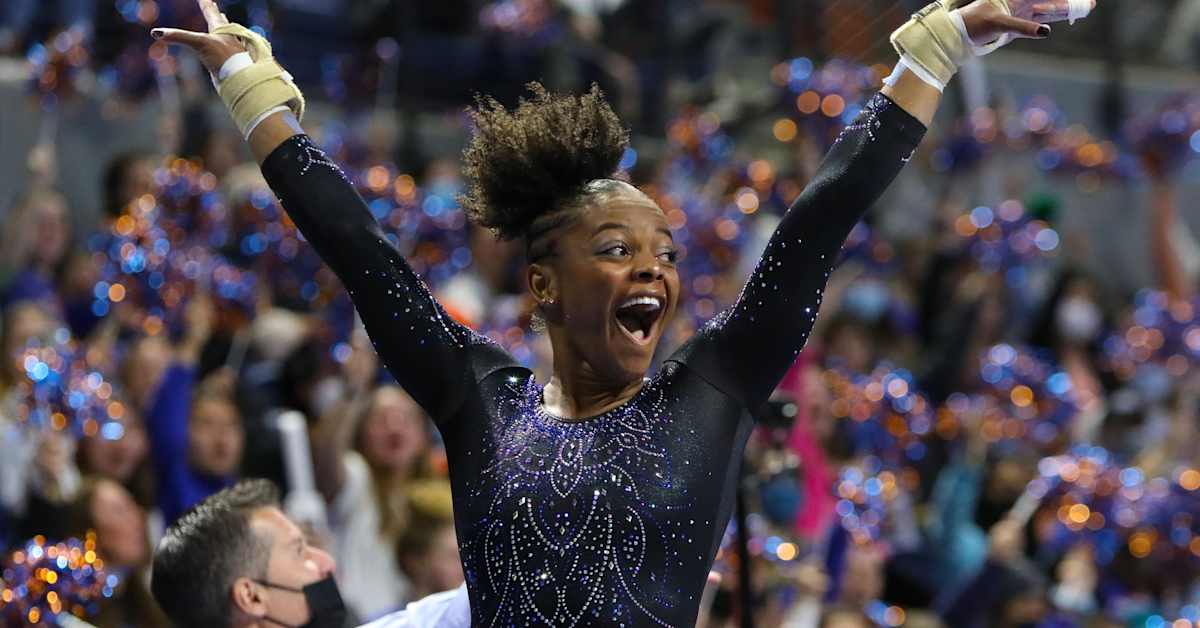 Thomas’s clutch afternoon was broadcast to households across the country, as Sunday marked the first regular-season dual meet ever aired nationally on broadcast television. And it wasn’t just Thomas coming through for Florida when it mattered the most. Senior Nya Reed posted a 10.0 on floor as well, putting Thomas in position to win the meet with a score of 9.950. When the lights were brightest, Thomas delivered.