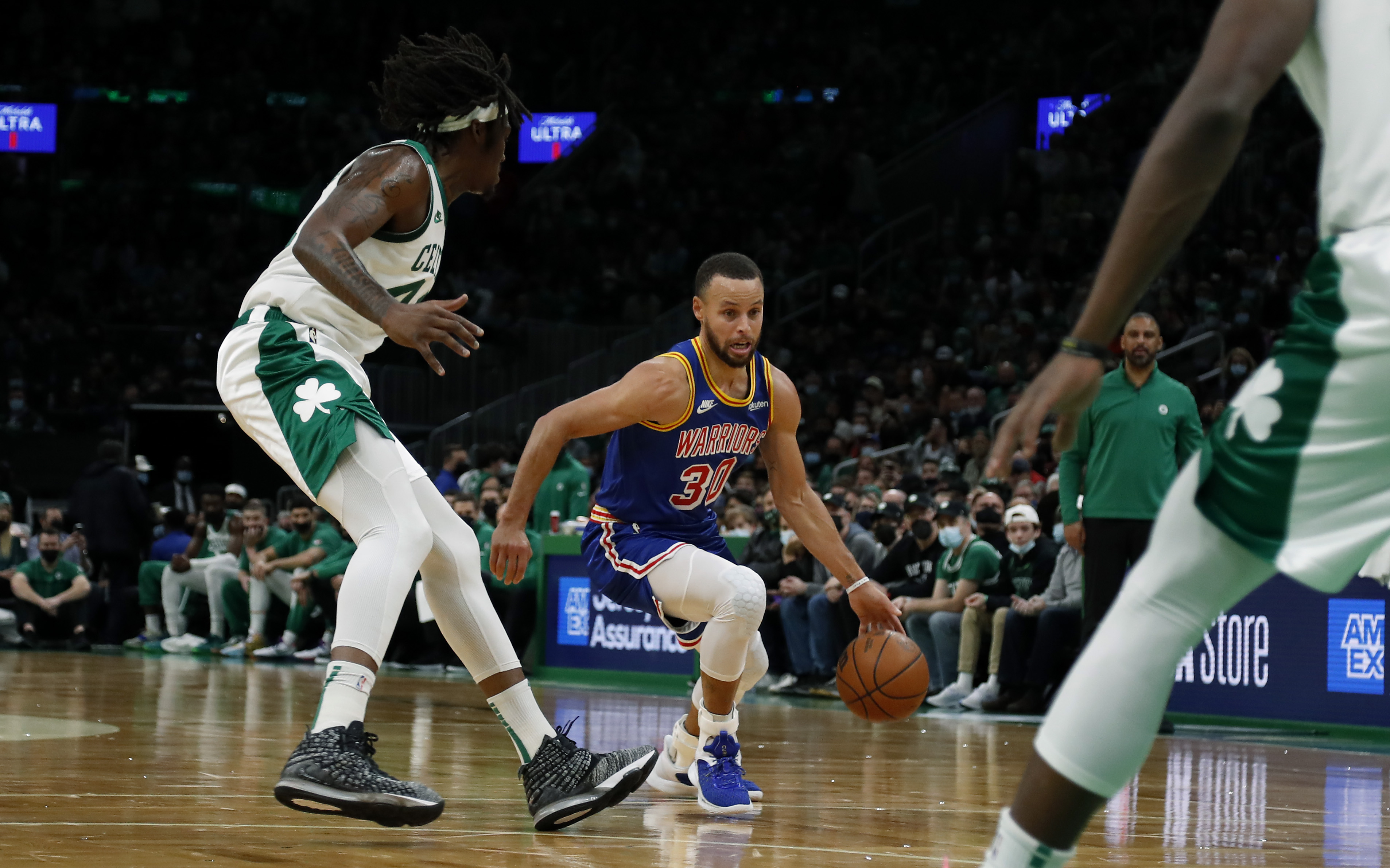 The Warriors jumped out to a 14-point first-half lead behind 44 points from Andrew Wiggins and Steph Curry, who exploded early in the game:
